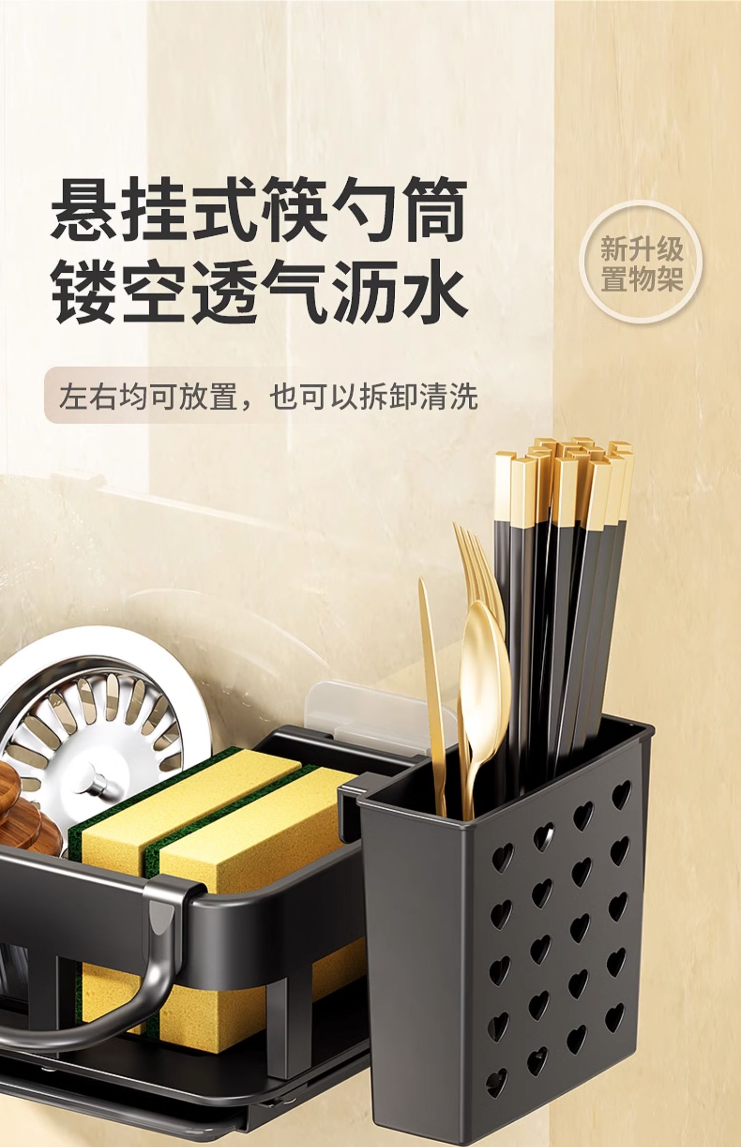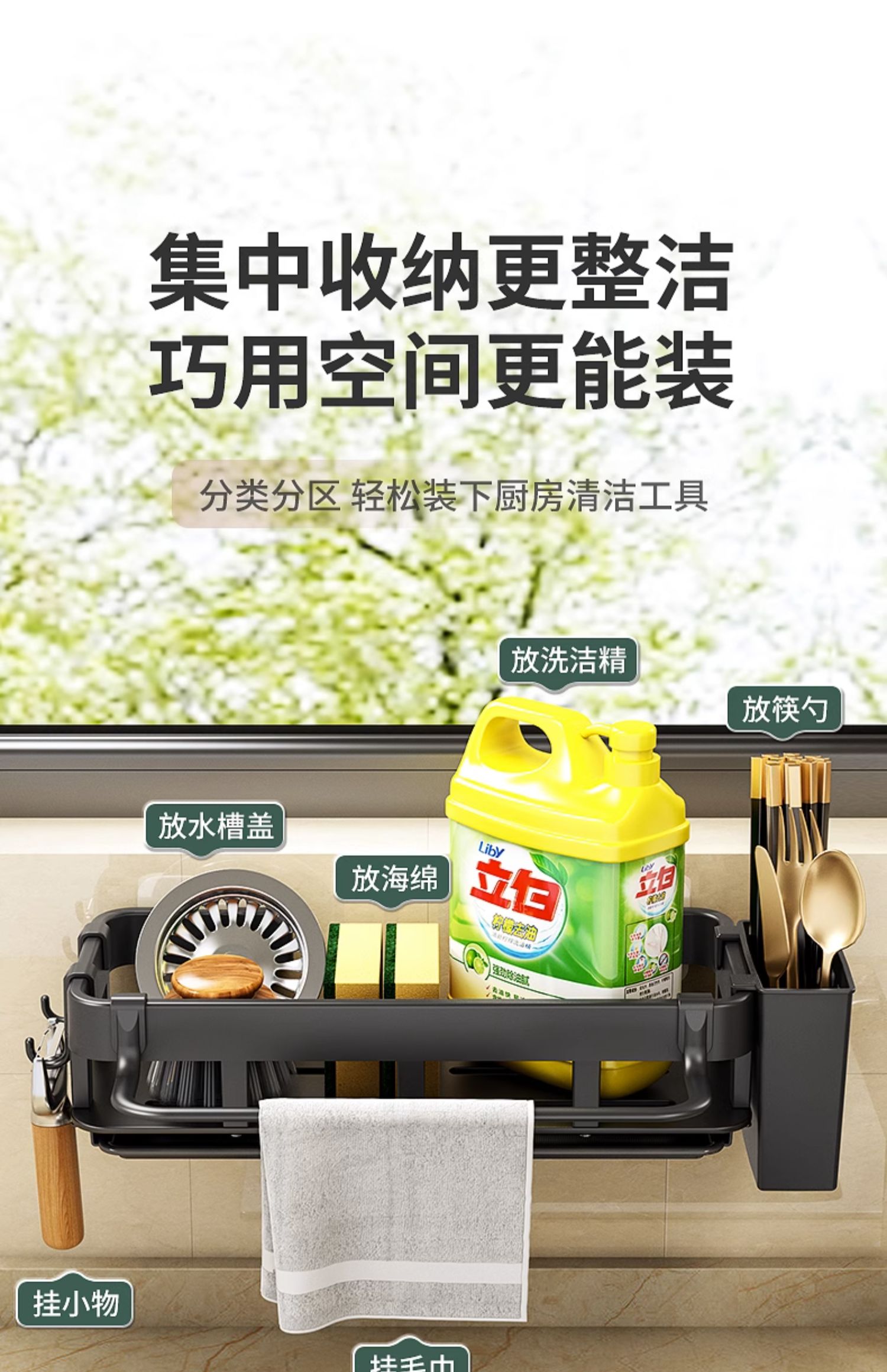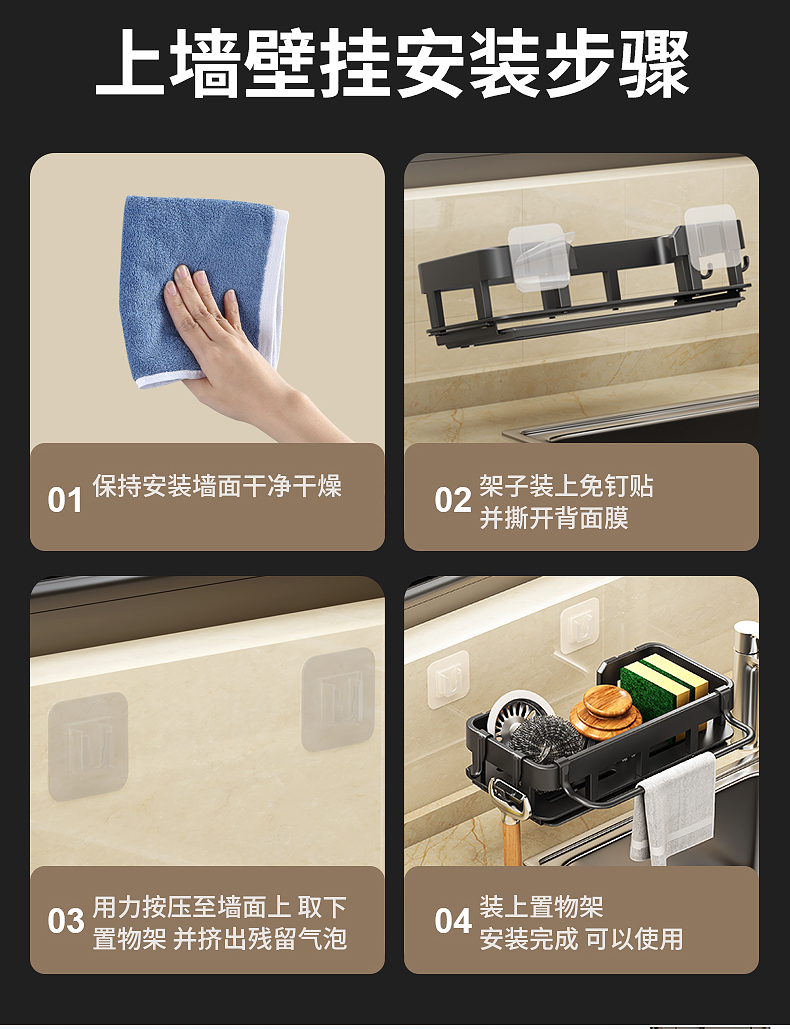 厨房置物架免打孔抹布海绵沥水收纳多功能壁挂调料架家用水槽神器的描述