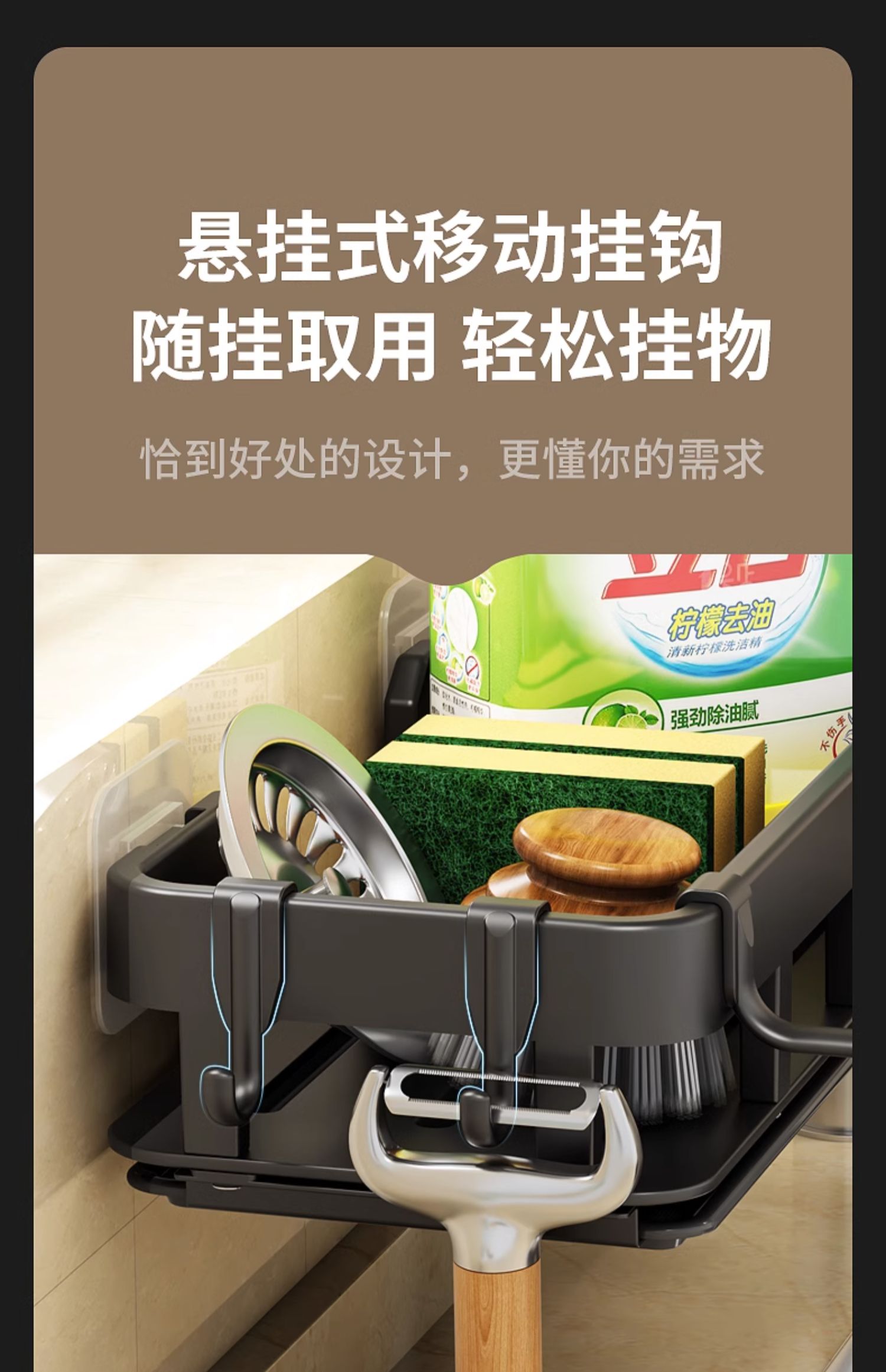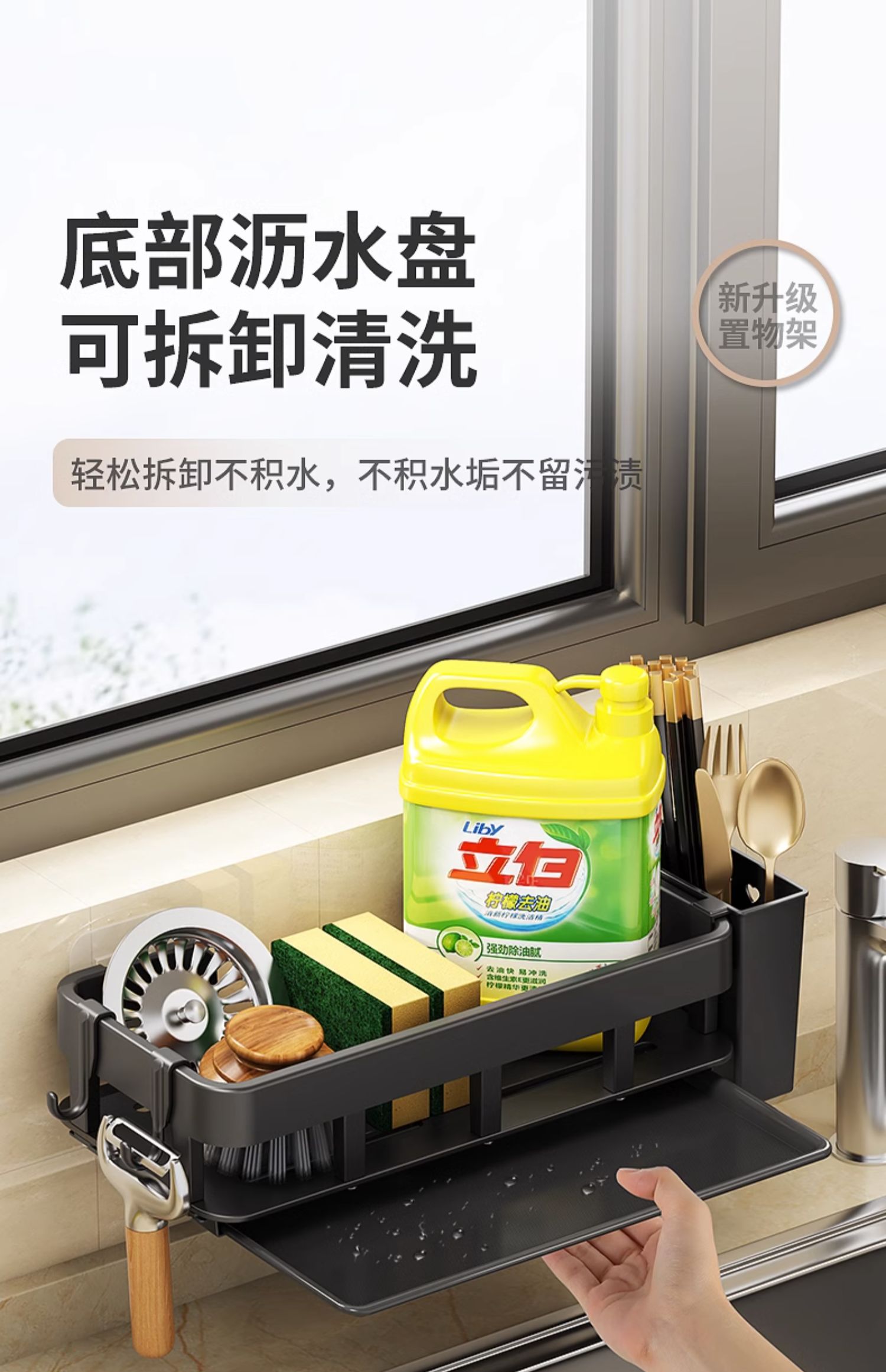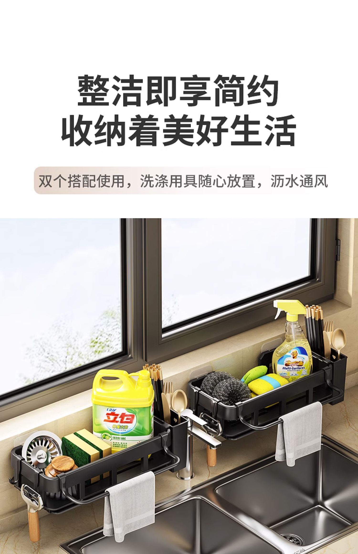 厨房置物架免打孔抹布海绵沥水收纳多功能壁挂调料架家用水槽神器的描述