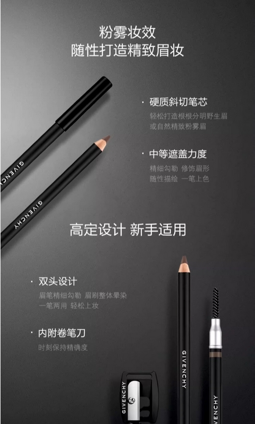 纪梵希粉雾眉笔双头自然粉雾妆效深咖啡黑棕色的描述