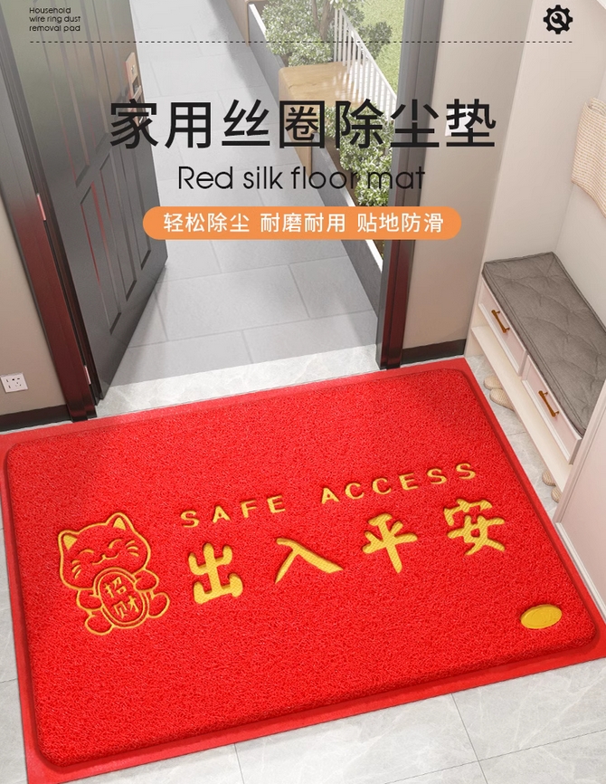 入户门地垫进门大门口出入平安门垫2025新款红色丝圈脚垫门外地毯的描述