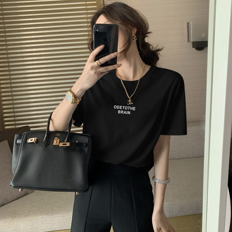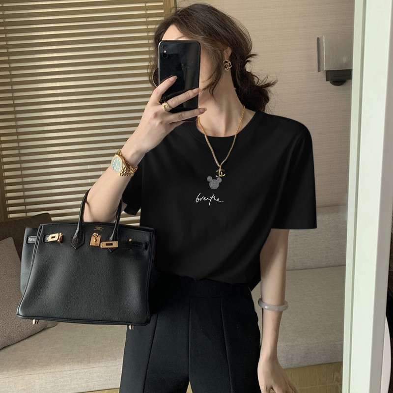 2023新款正肩纯棉短袖T恤女ins时尚百搭洋气减龄显瘦上衣夏季薄款