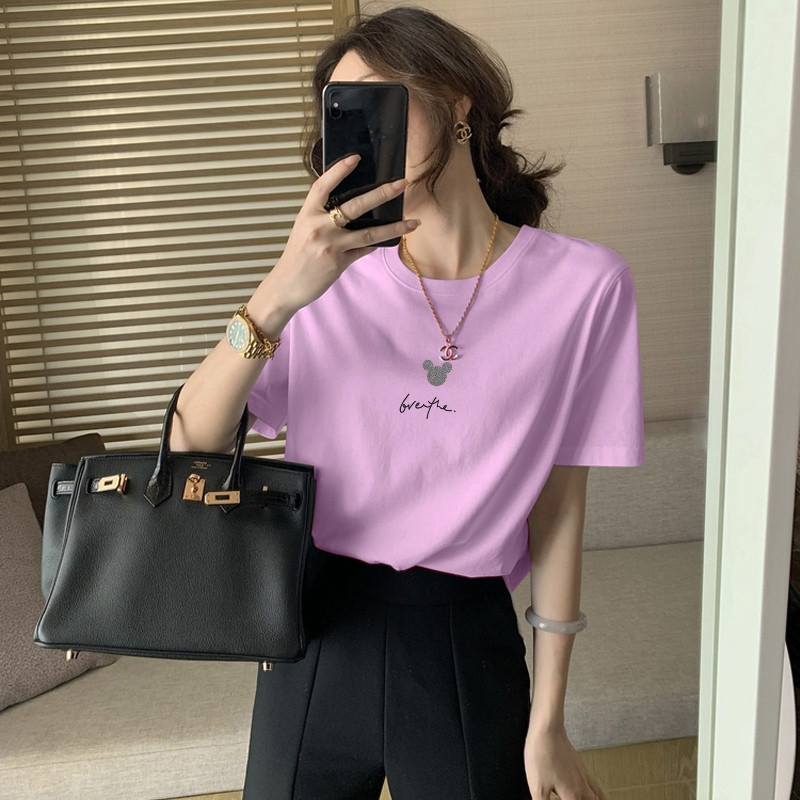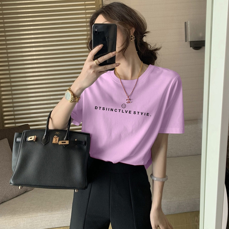 2023新款正肩纯棉短袖T恤女ins时尚百搭洋气减龄显瘦上衣夏季薄款的描述