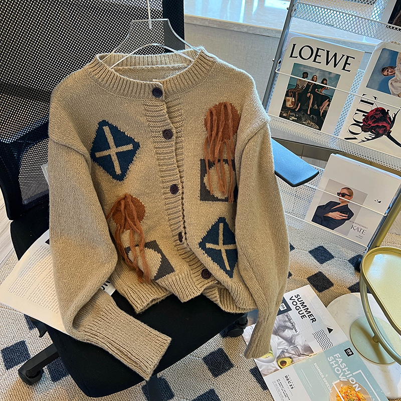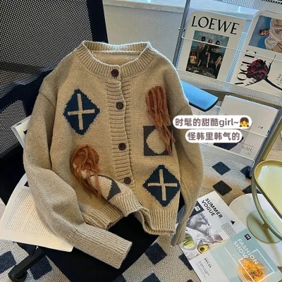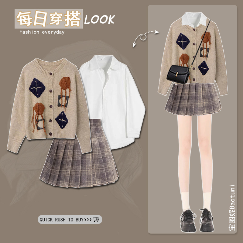 秋装搭配一整套时尚日系慵懒复古外穿毛衣女2023新款温柔针织开衫的描述