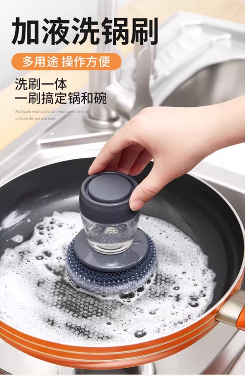 厨房自动加液洗碗刷家用洗锅刷海绵刷钢丝球长柄清洁刷子刷锅神器